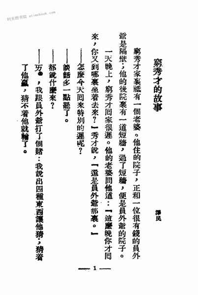 | 网盘路径:/时光图书馆珍藏系列/书籍文件/老图书/《穷秀才故事》电子版合集.db | ||