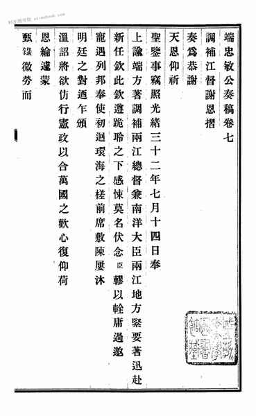 文件下载 | 名称:《端忠敏公奏稿_卷7》电子版合集 | |