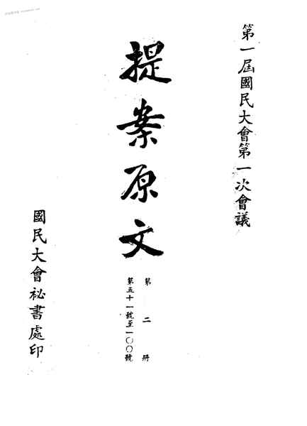 文件下载 | 名称:《第一届国民大会第一次会议提案原文_第2册》电子版合集 | |