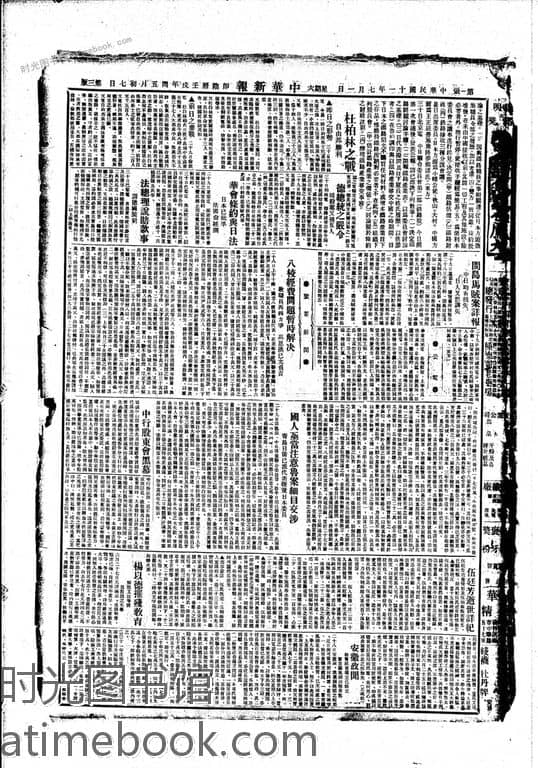 网盘路径:/时光图书馆珍藏系列/书籍文件/老报纸/上海/《中华新报》(上海)1915-1926/《中华新报》(上海)1922年影印版合集下半年.db
