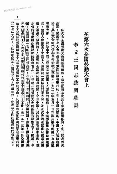 2-一、李立三同志在第六次全国劳动大会上的开幕词