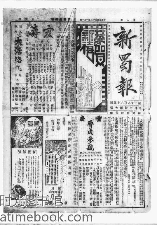 | 网盘路径:/时光图书馆珍藏系列/书籍文件/老报纸/四川/《新蜀报》(重庆)1926-1950/《新蜀报》(重庆)1933年影印版合集.db | ||