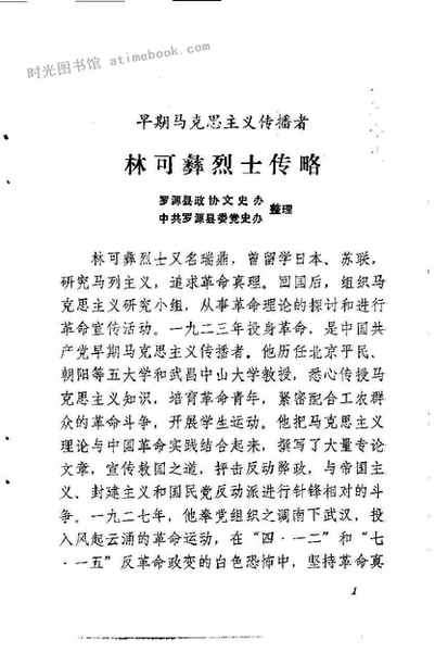 | 网盘路径:/时光图书馆珍藏系列/书籍文件/老图书/《罗源文史资料_第2辑_林可彝烈士专辑》电子版合集.db | ||