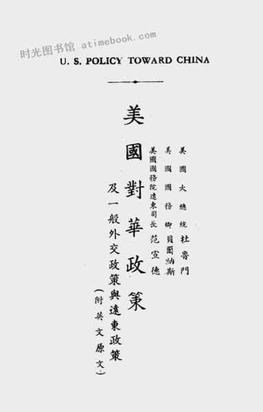 | 网盘路径:/时光图书馆珍藏系列/书籍文件/老图书/《美国对华政策及一般外交政策与远东政策》电子版合集.db | ||