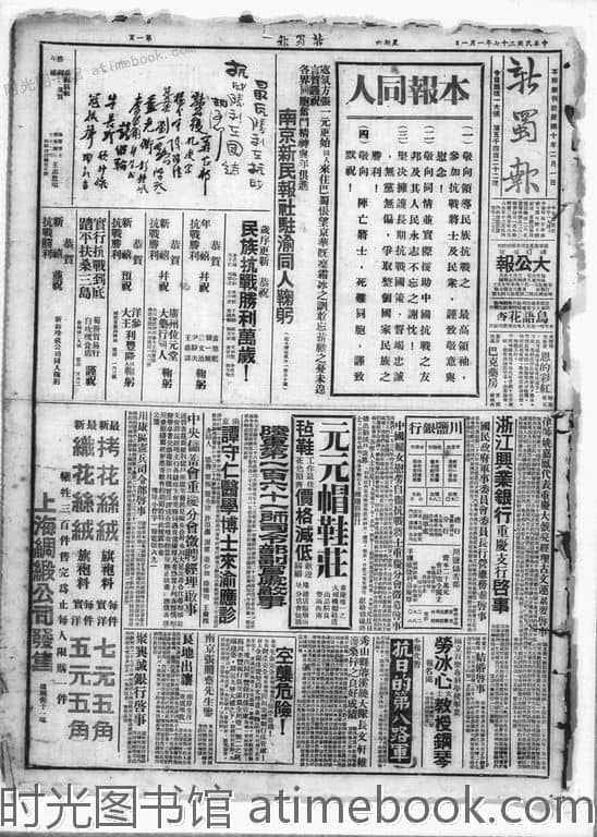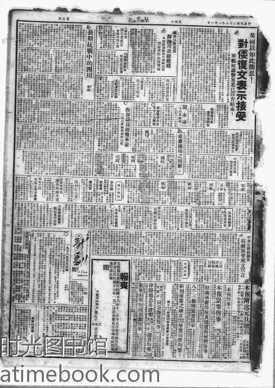 | 网盘路径:/时光图书馆珍藏系列/书籍文件/老报纸/四川/《新蜀报》(重庆)1926-1950/《新蜀报》(重庆)1938年影印版合集.db | ||