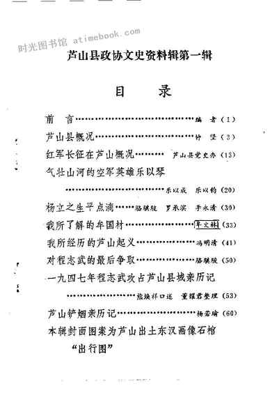 | 网盘路径:/时光图书馆珍藏系列/书籍文件/老图书/《芦山县文史资料选辑_第1辑》电子版合集.db | ||