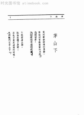 网盘路径:/时光图书馆珍藏系列/书籍文件/老图书/《茅山下》电子版合集.db