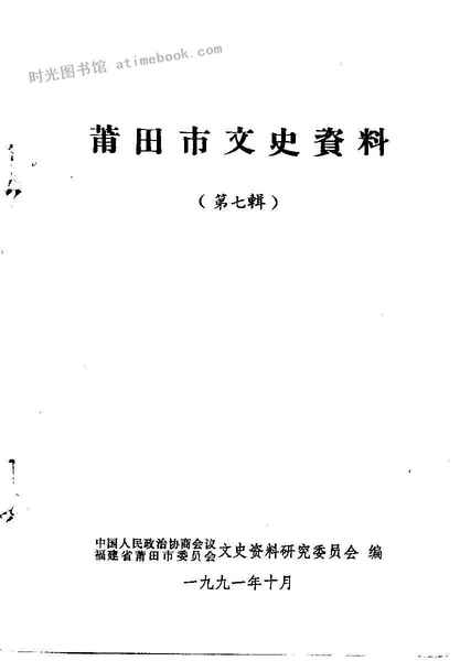 网盘路径:/时光图书馆珍藏系列/书籍文件/老图书/《莆田市文史资料_第7辑》电子版合集.db