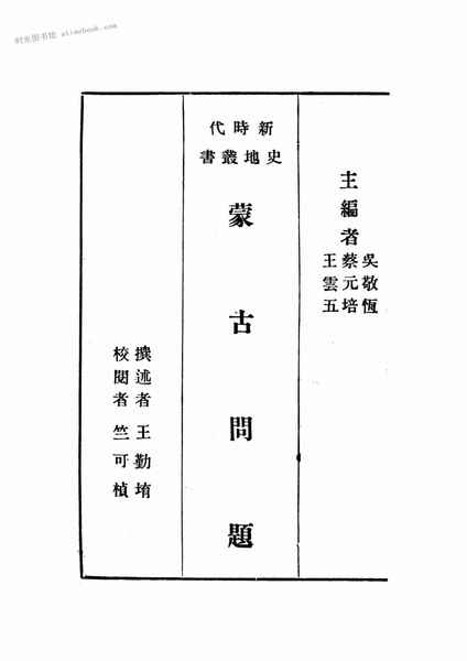 | 网盘路径:/时光图书馆珍藏系列/书籍文件/老图书/《蒙古问题》电子版合集.db | ||