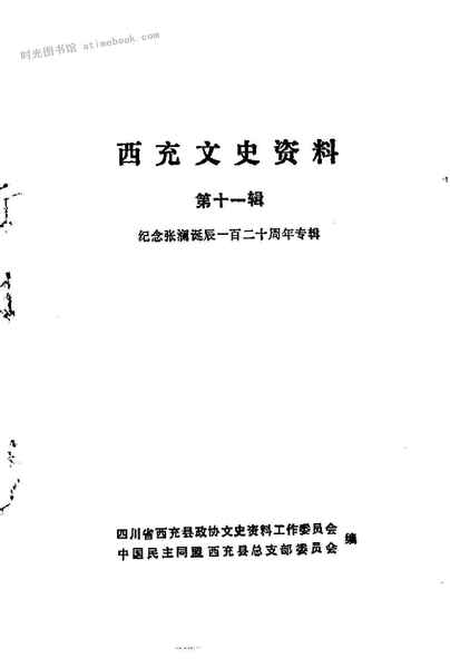 | 网盘路径:/时光图书馆珍藏系列/书籍文件/老图书/《西充文史资料_第11辑_纪念张澜诞辰120周年专辑》电子版合集.db | ||
