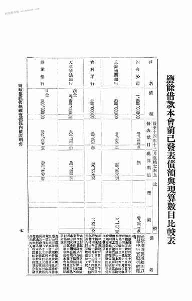 2-盐馀借款本会前已发表债额与现算数目比较表