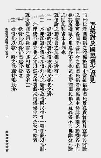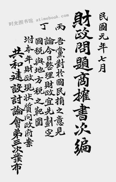 | 网盘路径:/时光图书馆珍藏系列/书籍文件/老图书/《财政问题商榷书次编(共和建设讨论会第三次发布)》电子版合集.db | ||