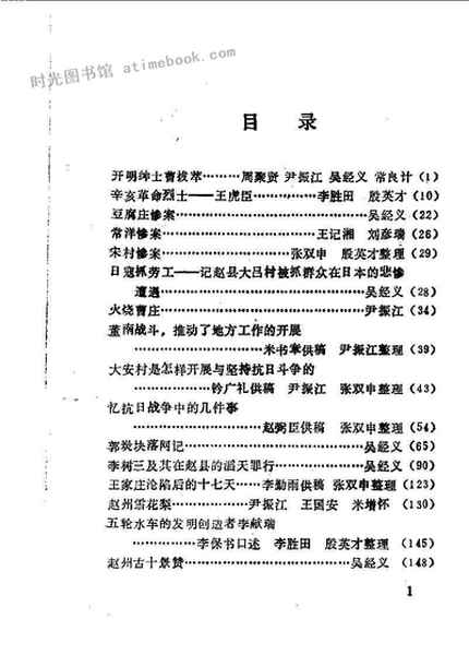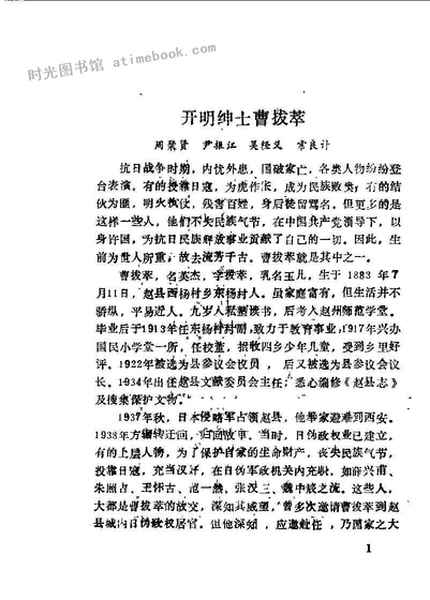 | 网盘路径:/时光图书馆珍藏系列/书籍文件/老图书/《赵县文史资料_第1辑》电子版合集.db | ||
