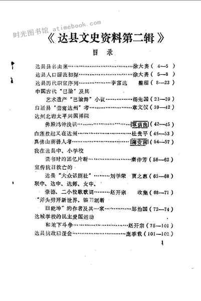 | 网盘路径:/时光图书馆珍藏系列/书籍文件/老图书/《达县文史资料_第2辑》电子版合集.db | ||