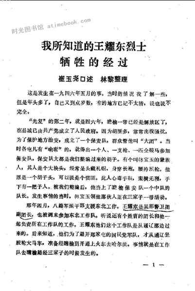 2-我所知道的王耀东烈士牺牲的经过——崔玉尧囗述林黎整理