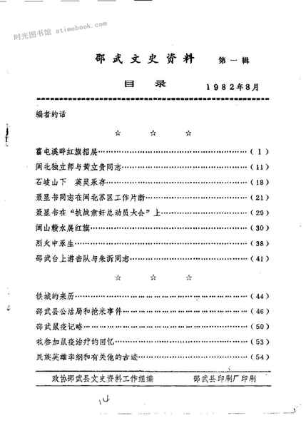 | 网盘路径:/时光图书馆珍藏系列/书籍文件/老图书/《邵武文史资料_第1辑》电子版合集.db | ||