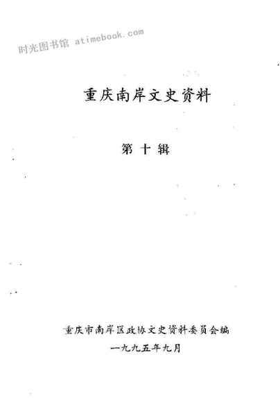 | 网盘路径:/时光图书馆珍藏系列/书籍文件/老图书/《重庆南岸文史资料_第10辑》电子版合集.db | ||