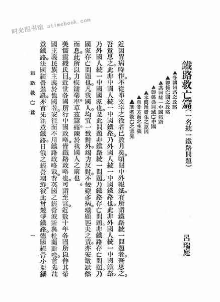 老图书–《铁路救亡篇一名统一铁路问题》电子版合集