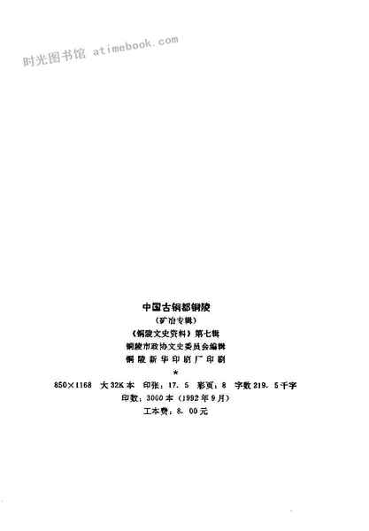 网盘路径:/时光图书馆珍藏系列/书籍文件/老图书/《铜陵文史资料_第7辑_中国古铜都铜陵(矿治专辑)》电子版合集.db