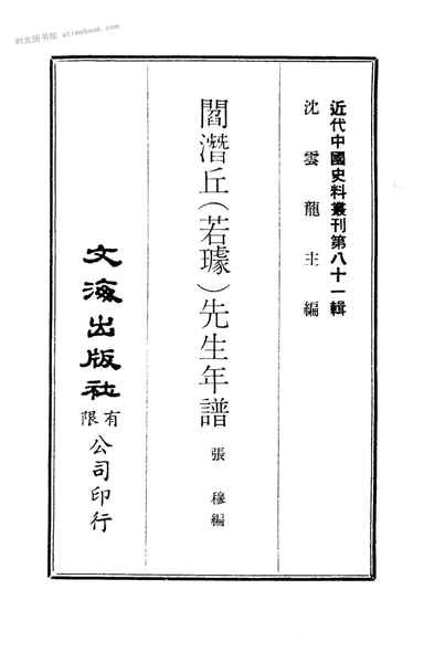 | 网盘路径:/时光图书馆珍藏系列/书籍文件/老图书/《阎潜丘(若璩)先生年谱》电子版合集.db | ||