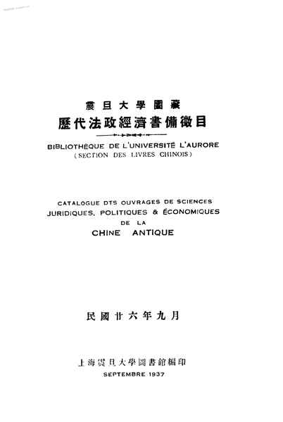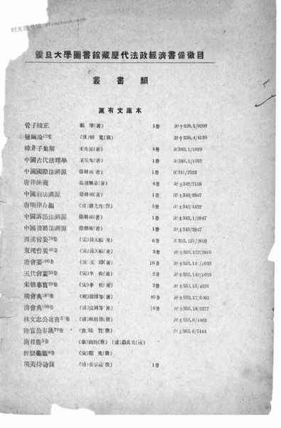 老图书–《震旦大学图藏:历代法政经济书备徵目》电子版合集