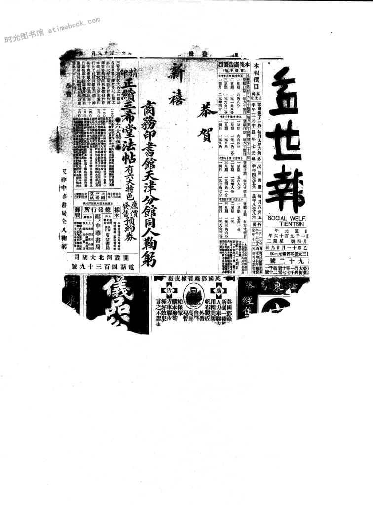 网盘路径:/时光图书馆珍藏系列/书籍文件/老报纸/天津/《益世报》(天津)1915-1949/《益世报》(天津)1916年影印版下半年.db