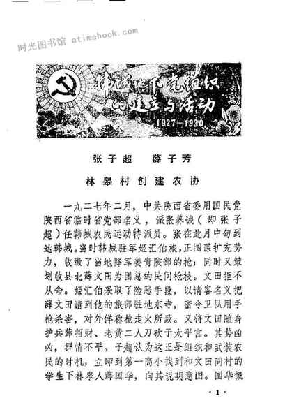 3-韩城地下*组织的建立与活动(1927–1930)张子超薛子芳