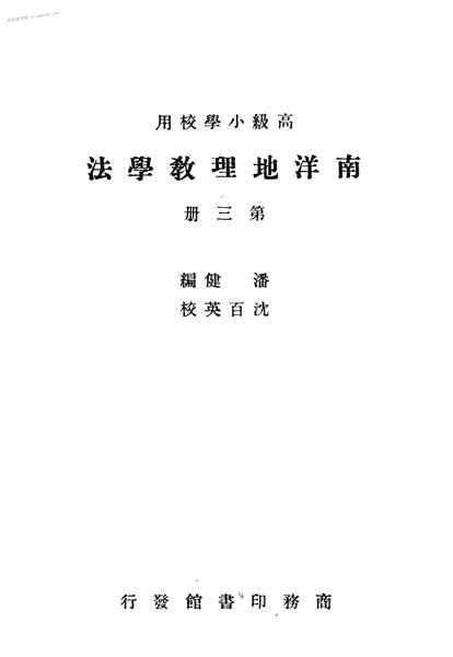 | 网盘路径:/时光图书馆珍藏系列/书籍文件/老图书/《高级小学校用南洋地理教学法_第3册》电子版合集.db | ||