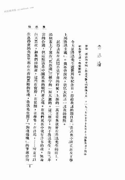 | 网盘路径:/时光图书馆珍藏系列/书籍文件/老图书/《鲁迅论及其他》电子版合集.db | ||