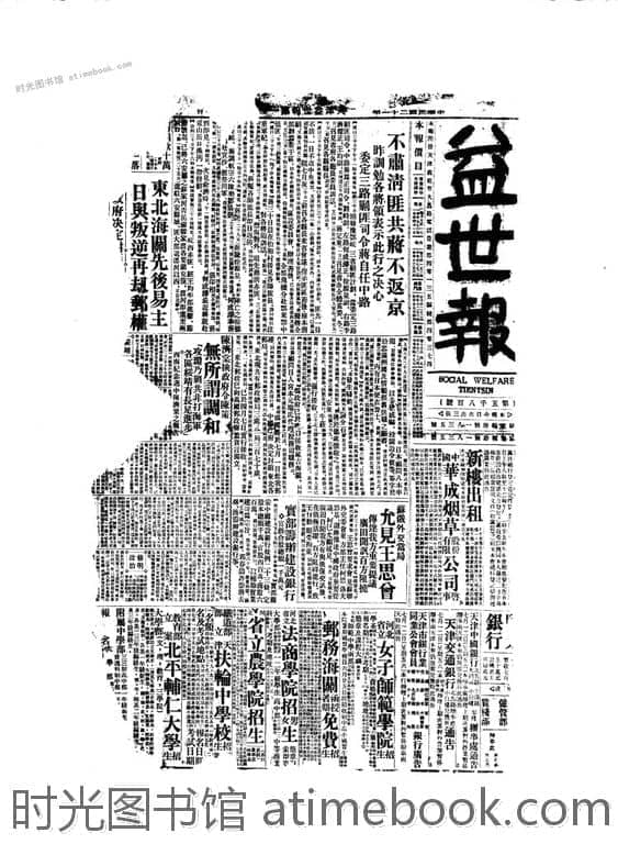 | 网盘路径:/时光图书馆珍藏系列/书籍文件/老报纸/天津/《益世报》(天津)1915-1949/《益世报》(天津)1932年影印版下半年.db | ||