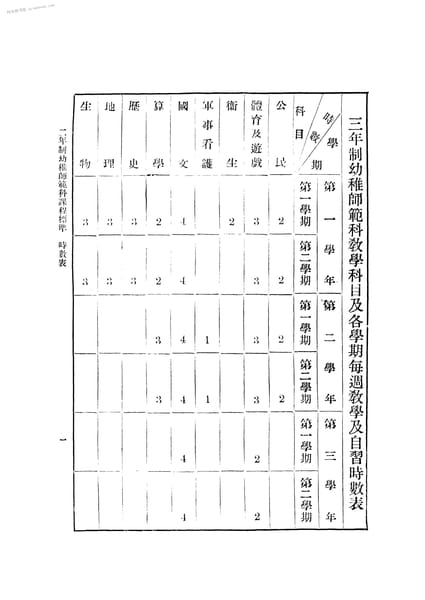 2-三年幼稚师范科教学科目及各学期每周教学及自习时数表