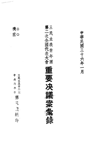 文件下载 | 名称:《三民主义青年团第二次全国代表大会重要决议案汇录》电子版合集 | |