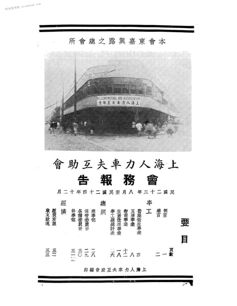 | 网盘路径:/时光图书馆珍藏系列/书籍文件/老图书/《上海人力车夫互助会会务报告_民国二十三年八月至民国二十四年十二月》电子版合集.db | ||