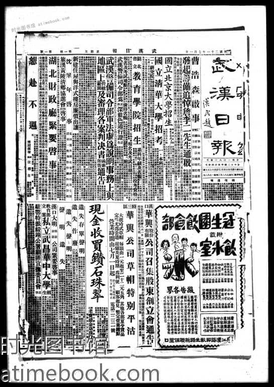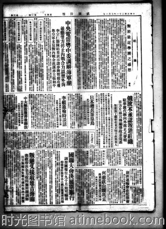 书籍名称:《武汉日报》(汉口)1932年影印版合集下半年