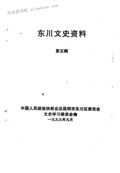 | 网盘路径:/时光图书馆珍藏系列/书籍文件/老图书/《东川文史资料_第5辑》电子版合集.db | ||
