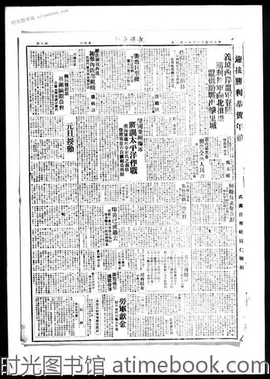 | 网盘路径:/时光图书馆珍藏系列/书籍文件/老报纸/湖北/《武汉日报》(汉口)1933-1949/《武汉日报》(汉口)1944年影印版合集.db | ||