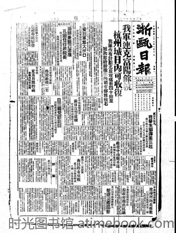 | 网盘路径:/时光图书馆珍藏系列/书籍文件/老报纸/浙江/《浙瓯日报》(浙江永嘉)1935-1949/《浙瓯日报》(浙江永嘉)1938年影印版合集.db | ||