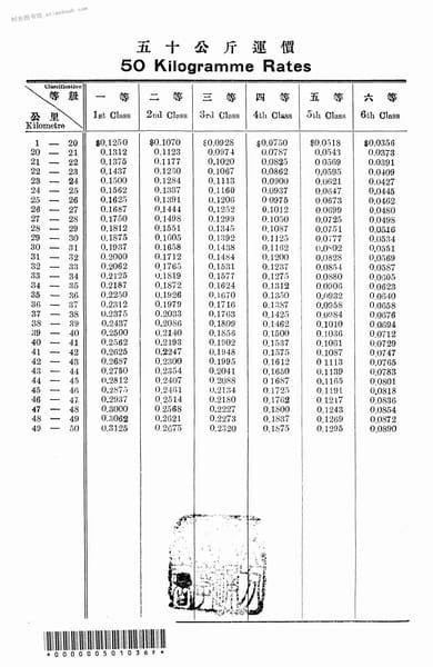 3-五十公斤运价