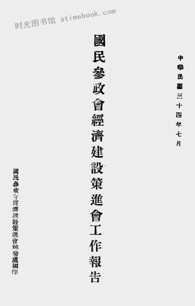 网盘路径:/时光图书馆珍藏系列/书籍文件/老图书/《中华民国三十四年七月_国民参政会经济建设策进会工作报告》电子版合集.db