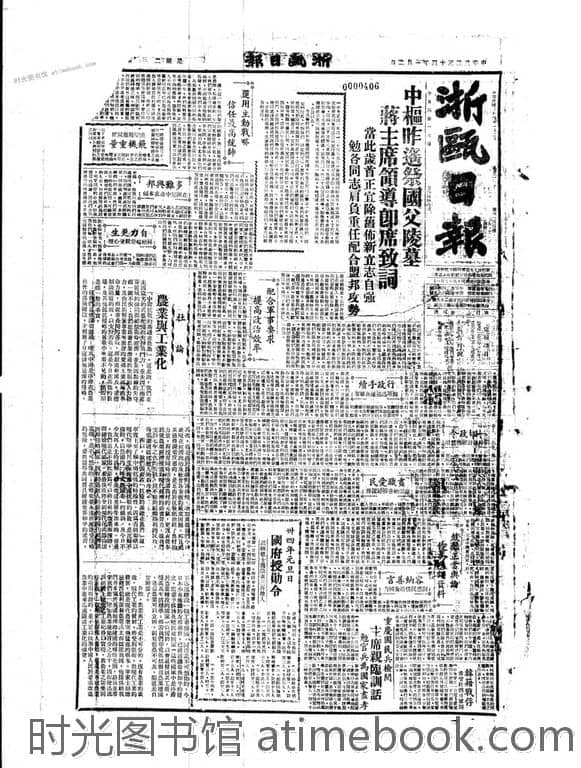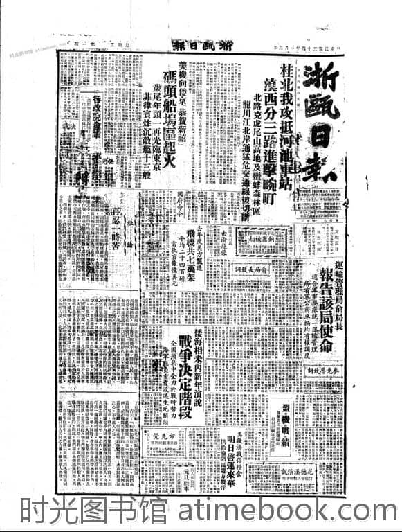 | 网盘路径:/时光图书馆珍藏系列/书籍文件/老报纸/浙江/《浙瓯日报》(浙江永嘉)1935-1949/《浙瓯日报》(浙江永嘉)1945年影印版合集.db | ||