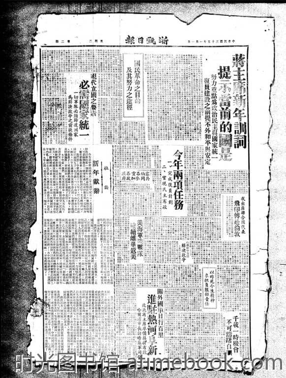 | 网盘路径:/时光图书馆珍藏系列/书籍文件/老报纸/浙江/《浙瓯日报》(浙江永嘉)1935-1949/《浙瓯日报》(浙江永嘉)1946年影印版合集.db | ||
