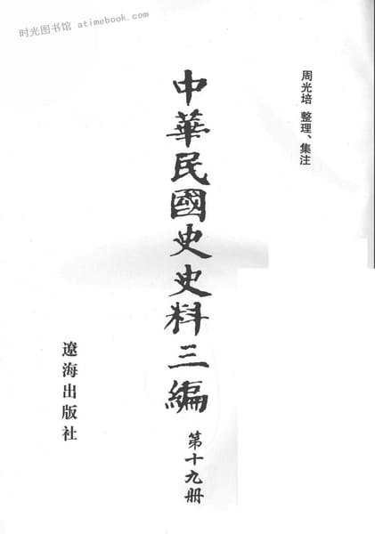 | 网盘路径:/时光图书馆珍藏系列/书籍文件/老图书/《中华民国史史料三编_第19册》电子版合集.db | ||