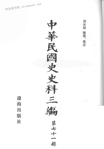 | 网盘路径:/时光图书馆珍藏系列/书籍文件/老图书/《中华民国史史料三编_第71册》电子版合集.db | ||