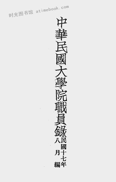 | 网盘路径:/时光图书馆珍藏系列/书籍文件/老图书/《中华民国大学院职员录》电子版合集.db | ||