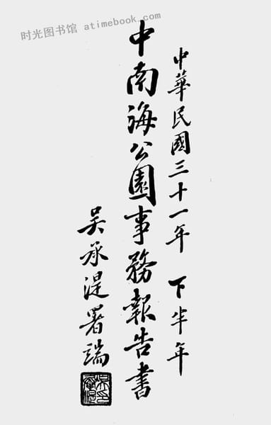 | 网盘路径:/时光图书馆珍藏系列/书籍文件/老图书/《中南海公园事务报告书(中华民国三十一年下半年)》电子版合集.db | ||
