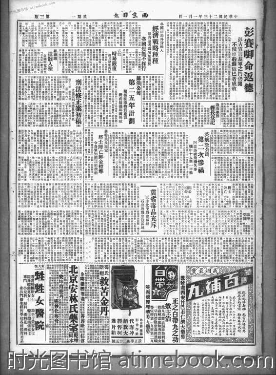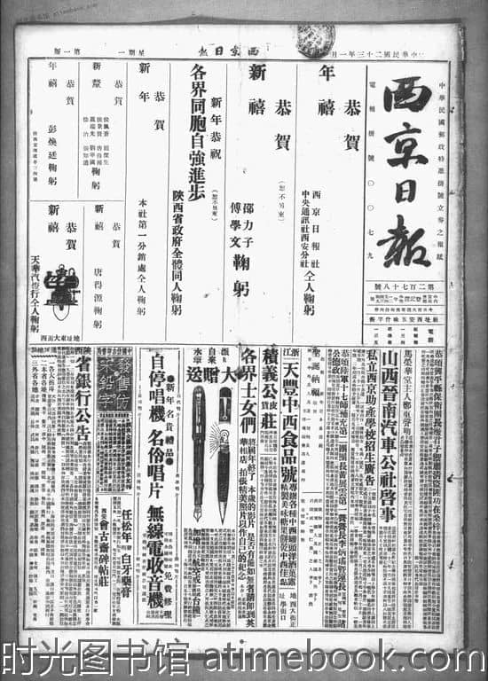 | 网盘路径:/时光图书馆珍藏系列/书籍文件/老报纸/陕西/《西京日报》(西安)1933-1949/《西京日报》(西安)1934年影印版合集.db | ||