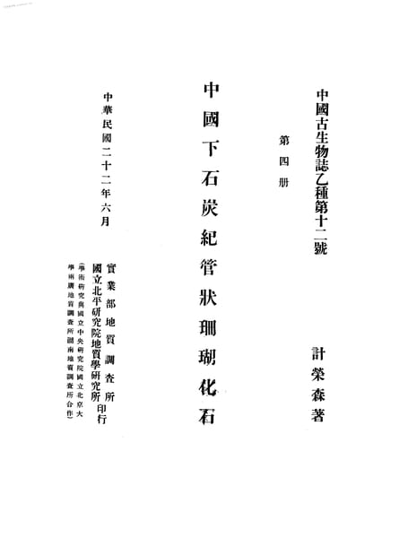 文件下载 | 名称:《中国下石炭纪管状珊瑚化石》电子版合集 | |