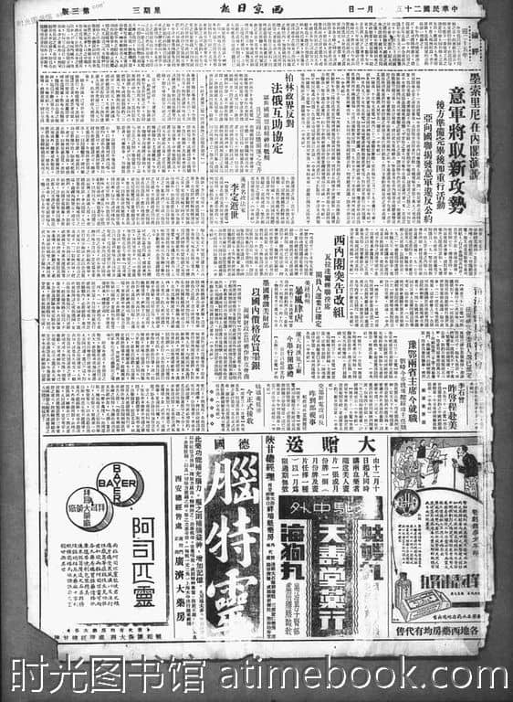 网盘路径:/时光图书馆珍藏系列/书籍文件/老报纸/陕西/《西京日报》(西安)1933-1949/《西京日报》(西安)1936年影印版合集.db