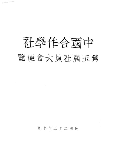 | 网盘路径:/时光图书馆珍藏系列/书籍文件/老图书/《中国合作学社第五届社员大会便览》电子版合集.db | ||