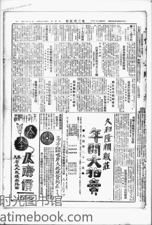 | 网盘路径:/时光图书馆珍藏系列/书籍文件/老报纸/辽宁/《东三省民报》(沈阳)1923-1932/《东三省民报》(沈阳)1928年合集.db | ||